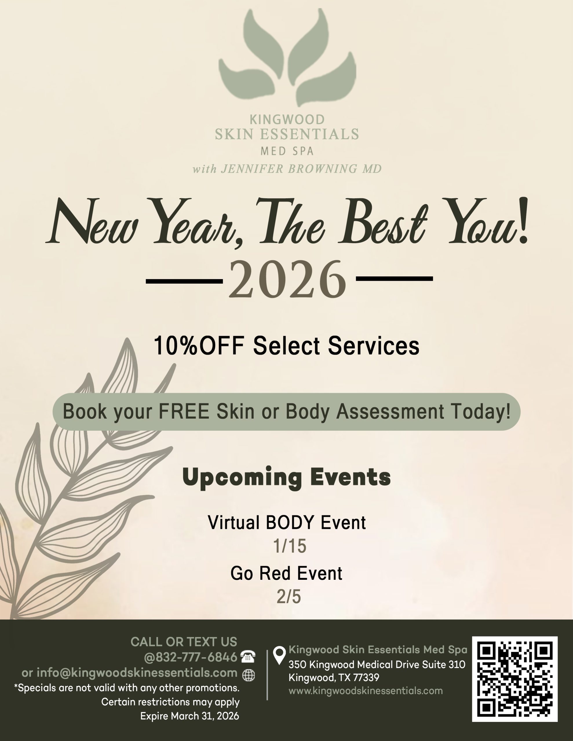 For our First Time Kingwood Skin Essentials Med Spa visitors, 10% off any regular priced service and/or product! *Discount excludes all injectables.